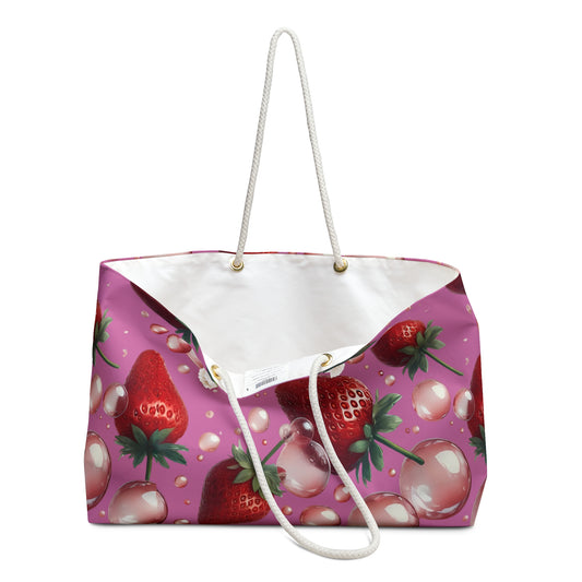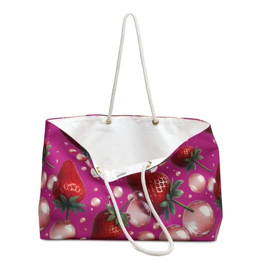 Strawberry Bubblegum Weekender Tote Bag Hot Pink